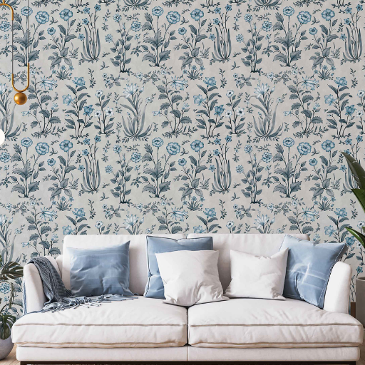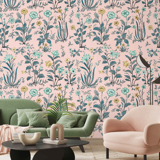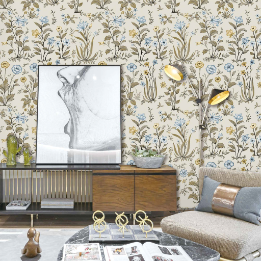 Bring timeless charm and gentle elegance to your walls with this hand-illustrated floral wallpaper. Featuring delicate botanical motifs in soothing shades of teal blue, soft mustard, and muted green, the design feels both classic and contemporary. Each flower and stem is thoughtfully detailed, creating a graceful all-over pattern that adds depth without overwhelming the space.