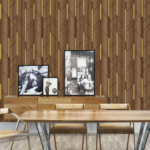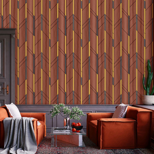 This wallpaper features a sophisticated Modern Geometric Wood Texture design. It blends the organic warmth of natural timber with contemporary, structured patterns—likely a chevron or herringbone layout based on the file name and design style.